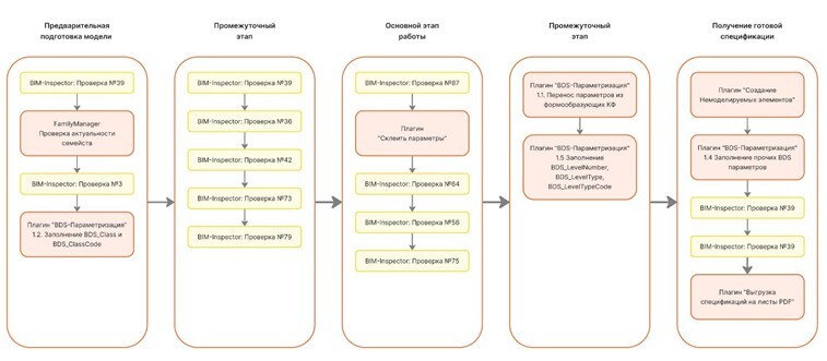 Для проектировщиков, кроме инструкций к инструментам, в технологиях также прописана последовательность их запусков и правила моделирования. Это нужно для того, чтобы инструменты работали корректно. Например, одно из ключевых правил — применение семейств из Family Manager.
