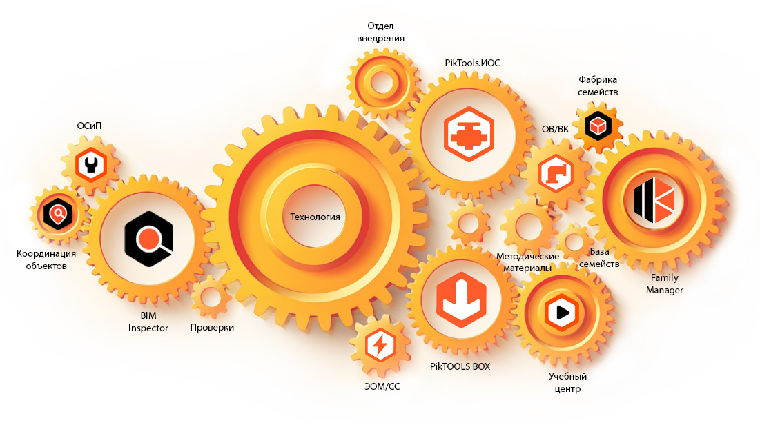 База семейств, инструменты PikTools, проверки в BIM Ispector, привязки в Family Manager — все эти элементы работают как «шестеренки» в нашем большом механизме. Благодаря продуманной технологии, все они работают слаженно и точно.