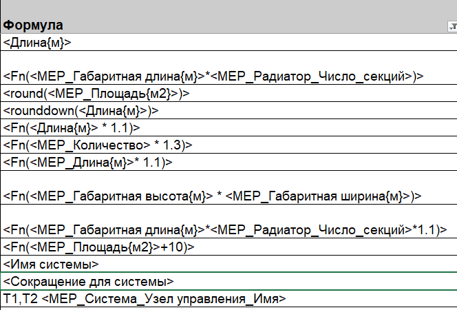 - Заполнение текстовых параметров в зависимости от параметров инженерных систем