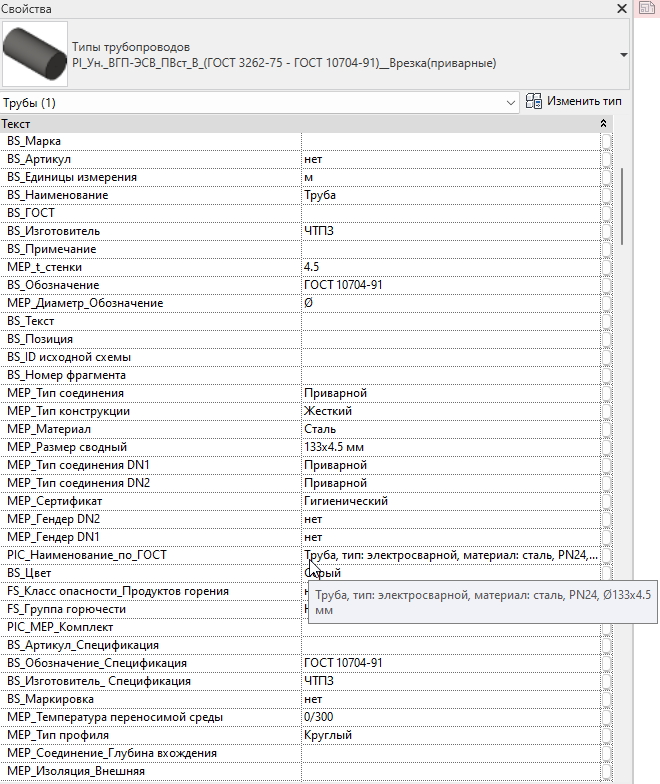 - FittingInsulation — передаёт значение параметра из элемента фитинга/арматуры в его изоляцию