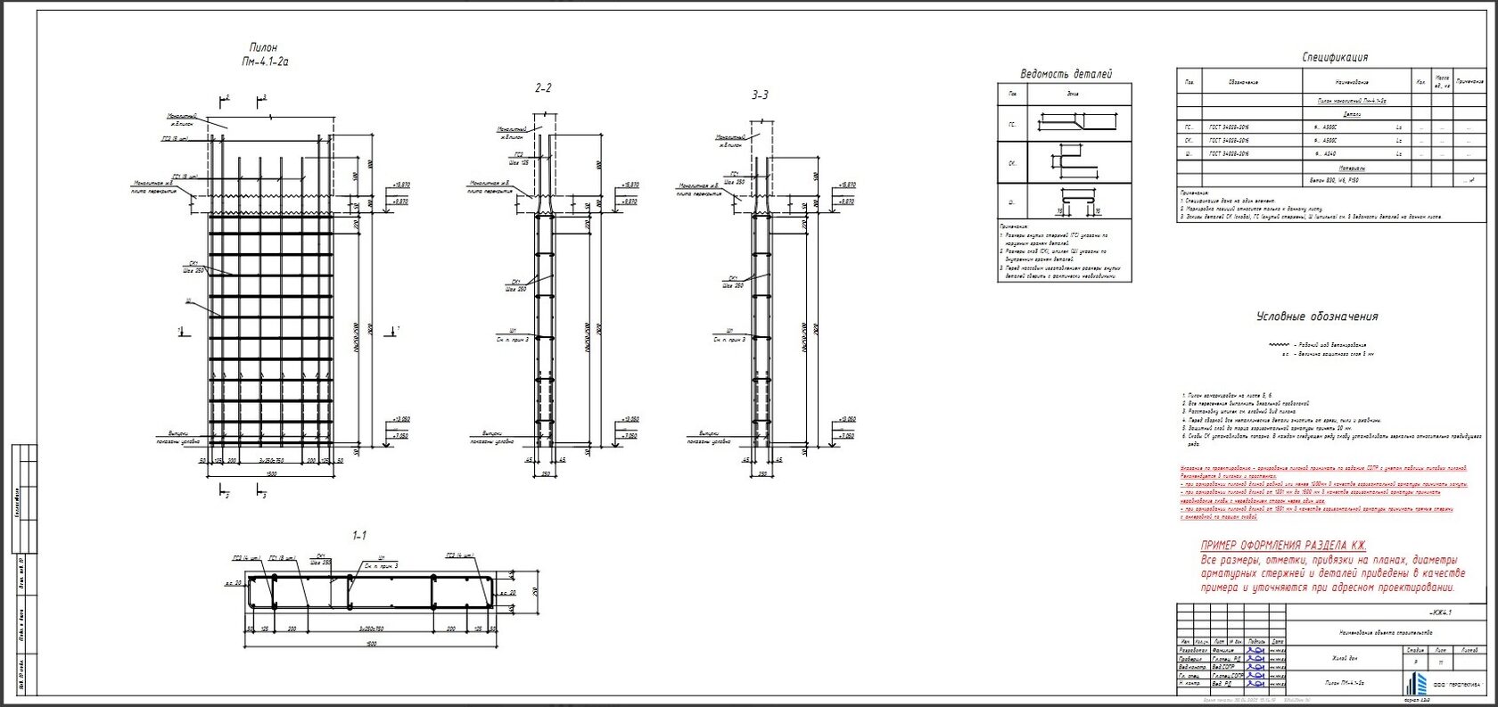 Плагин «Типовые пилоны» моделирует армирование, но не оформляет чертежи. Чертежи по типовым пилонам хранятся в отдельной базе, в формате dwg.