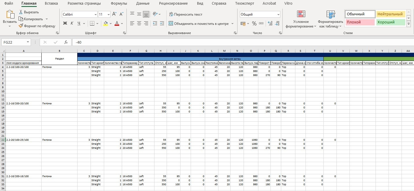 - анализирует заданные проектировщиком настройки опалубки и армирования
