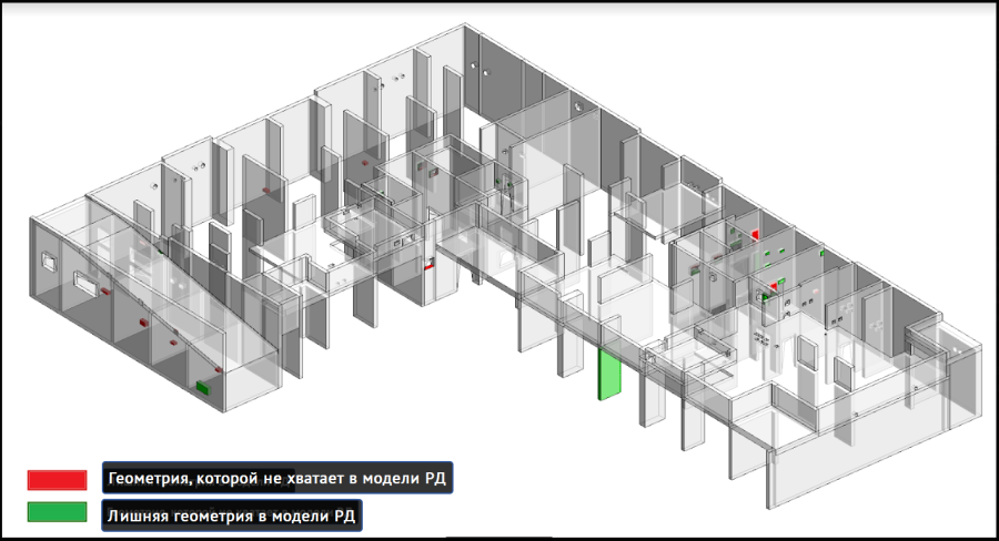 - красным — отсутствующая в РД геометрия