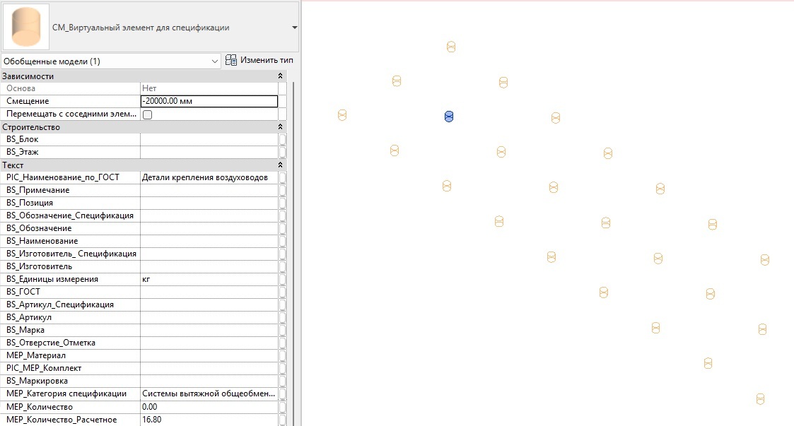 Для создания сводной спецификации, объединяющей штучные элементы и элементы, считаемые в метрах (трубы, воздуховоды) с учетом запаса, требуется создавать и постоянно контролировать дополнительные параметры.