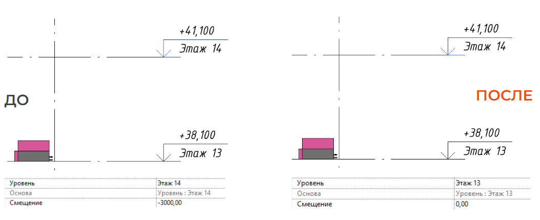 Если десятки элементов расположены корректно, а привязаны к совсем другим уровням за счет смещения, то сложно представить, сколько времени займет ручная корректировка. Потребуется самостоятельно определить, к какому уровню перепривязать, затем для части элементов произойдет физическое смещение, которые придется возвращать на место (стоит отметить, что для каких-то элементов Revit все-таки сам пересчитывает значения смещений).