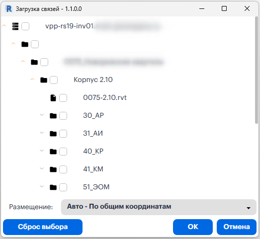При помощи него выбирается конкретный Revit-сервер, в котором находятся необходимые файлы, дальше пользователь проваливается в объект и уже в рамках объекта выбирает все необходимые файлы из различных папок.