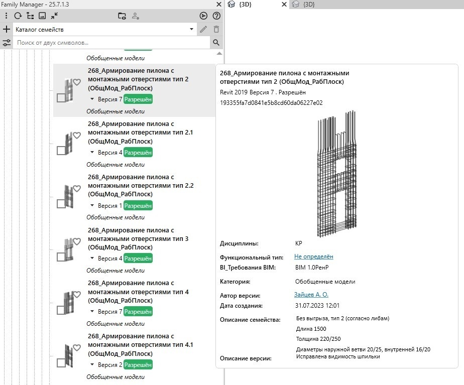 База с типовым армированием выполнена в виде загружаемых ifc семейств и хранится в библиотеке Family Manager. Наполнением базы в Family Manager занимаются Координаторы по ТИМ группы «Фабрика семейств».