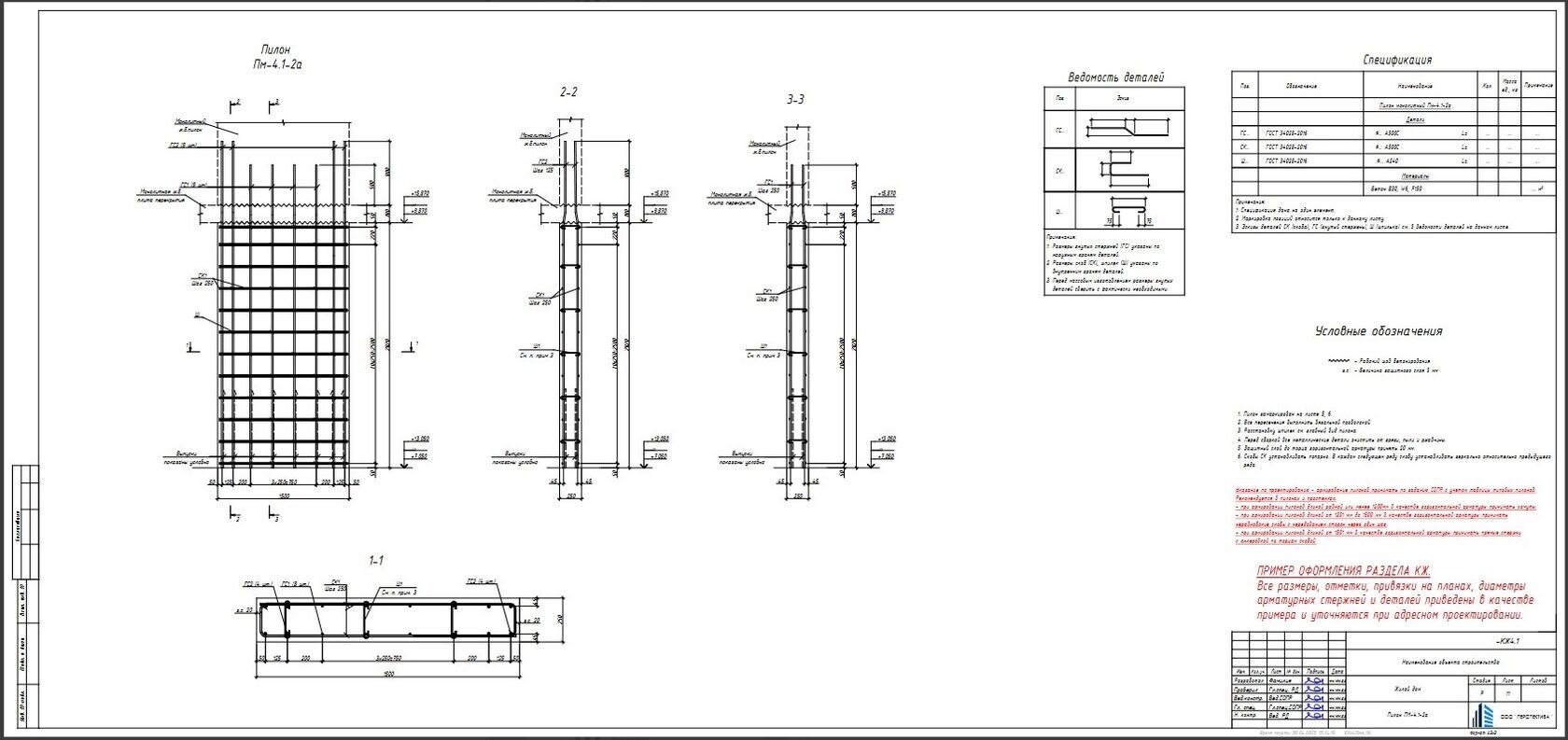 Плагин «Типовые пилоны» моделирует армирование, но не оформляет чертежи. Чертежи по типовым пилонам хранятся в отдельной базе, в формате dwg.